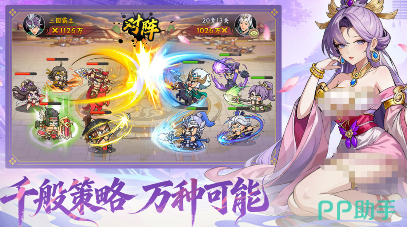 基于三国历史背景打造的策略对战游戏,收录大量高辨识度武将角色,每位棋子均配备独立技能体系与晋升成长路径。通过差异化布阵可激活阵营羁绊,例如“五虎上将”组合触发铁骑洪流效果,“魏国雄狮”组合提供铜墙铁壁防御加成。同步引入神兵锻造与美人养成双线成长系统,在保障策略对抗强度的同时,兼顾角色长期培养乐趣,新手玩家亦能高效完成武将收集并快速投入实战。