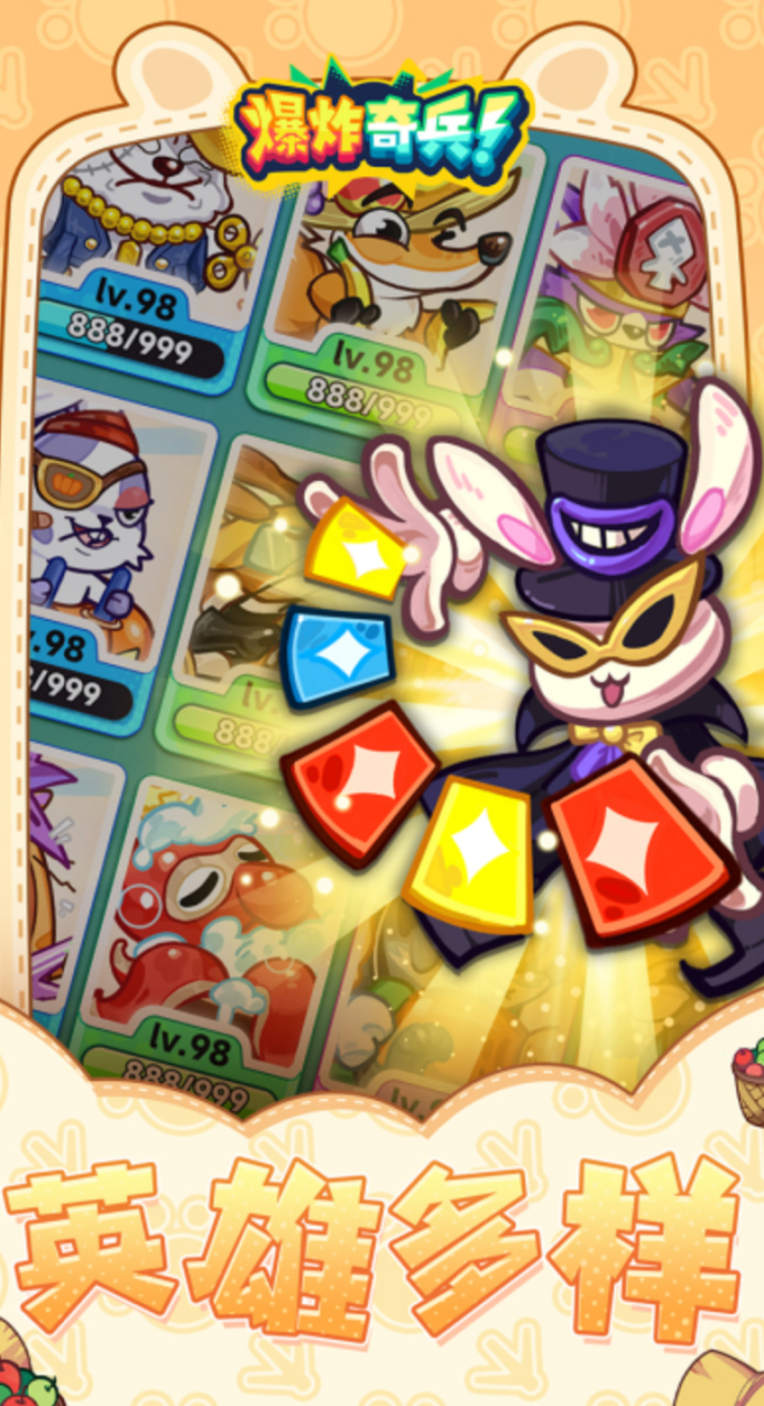 主打轻量化竞技体验的竖屏自走棋产品,核心机制围绕英雄合成与形态进化展开。拖拽相同等级单位进行合成时,将触发扩散式连锁反应,兼具障碍清除与友军增益功能。5v5对称棋盘要求玩家合理配置肉盾、输出、辅助三类职能单位,并依托职业羁绊构建稳定阵型;每局融入Roguelike元素,随机增益效果赋予战局高度不确定性,适配碎片化时间场景。
