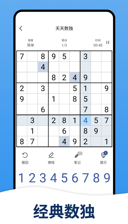 《天天数独》强调操作友好性与容错机制:支持单步撤销、全局擦除、错误高亮提示,并配备智能线索提示功能——当卡关时可获取关键格位的候选数字或唯一解方向,降低挫败感,保障解题连续性。其底层算法确保每道题目均有且仅有一个标准解,杜绝歧义。