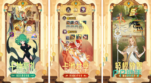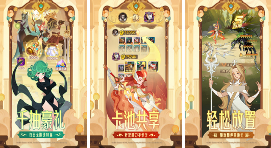 西式幻想风格标杆级放置产品,融合皮影戏艺术元素,UI与场景设计兼具精致感与辨识度。游戏强调轻量化操作:每日投入数分钟即可完成日常、扫荡、英雄升星等关键动作;策略维度则体现在五大阵营间的克制循环,需根据敌方配置动态调整前排坦度、后排输出与辅助站位,兼顾休闲性与战术思考。