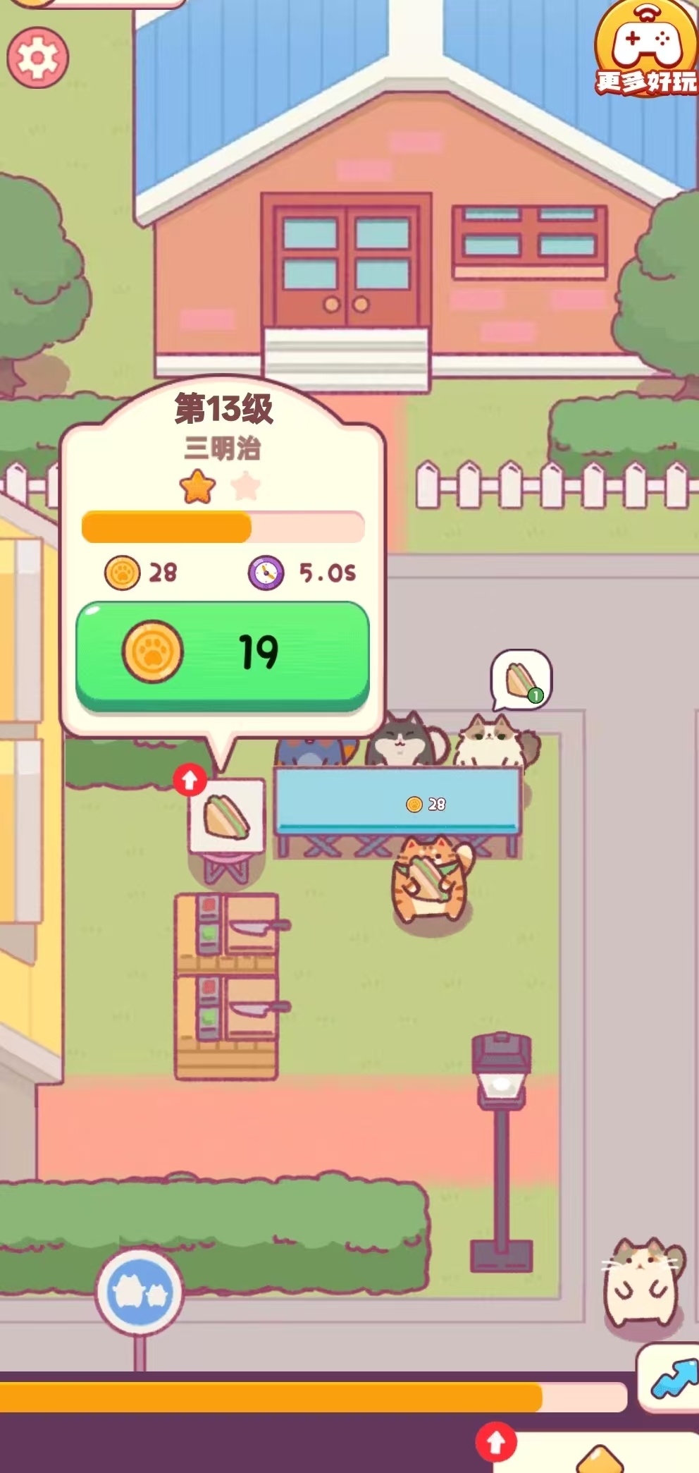 玩家将化身一只干劲十足的小猫店主,从零起步运营一家三明治专卖店。初期仅有一张工作台,需按节奏完成制作、出餐与收款全流程。随着客流增长和资金积累,可逐步添置自动烤箱、智能打包机等高效设备,提升服务效率与顾客满意度。