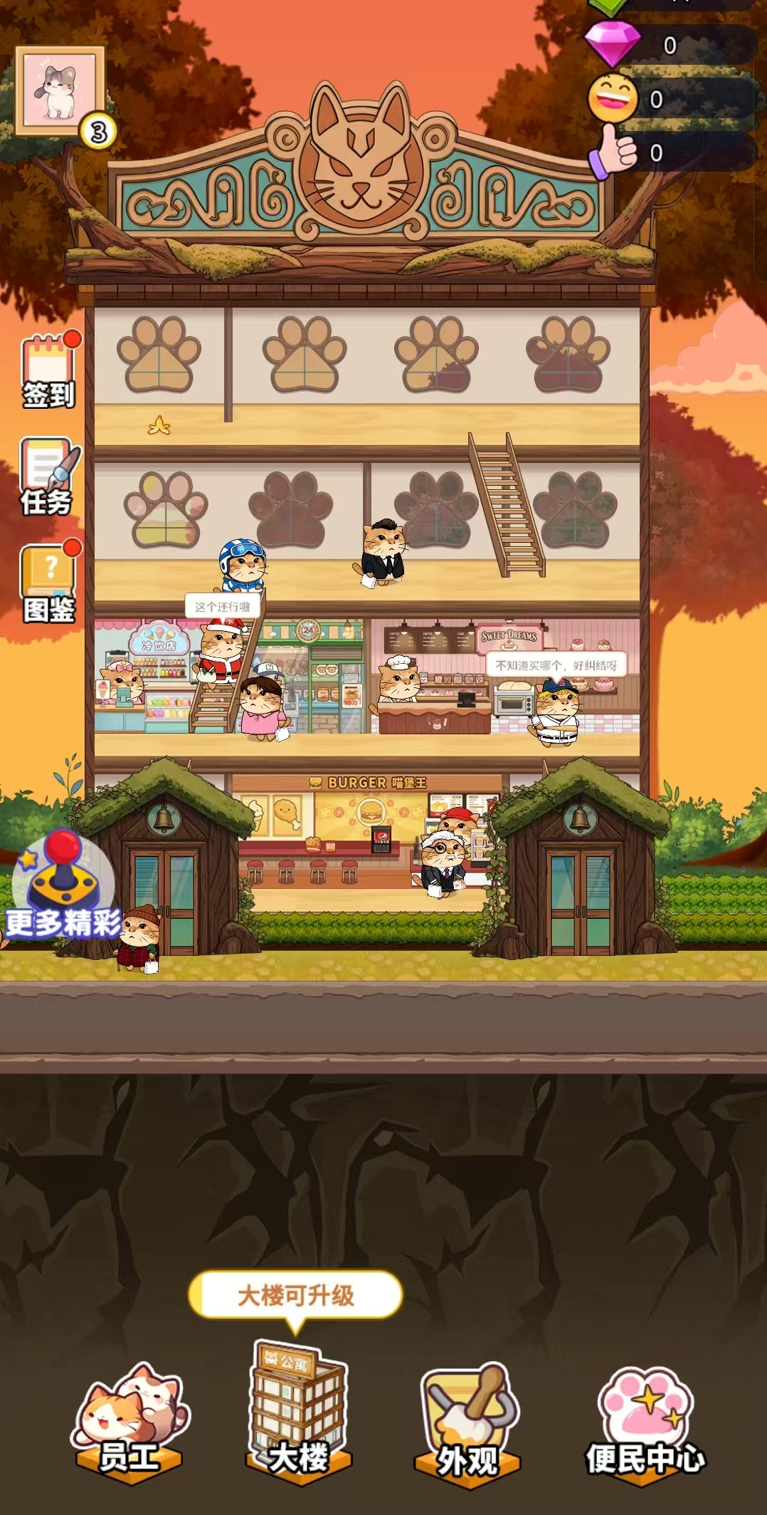 在一栋多层商业楼中开启创业之旅。玩家首先完成基础装修,随后开设首家冷饮门店试水市场。通过稳定盈利逐步解锁更高楼层与更多铺位类型,同步升级照明、空调、货架等硬件设施,并维持环境卫生与服务质量,以提升复购率与口碑传播力。