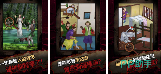 基于《小红帽》《糖果屋》《睡美人》等原始文本进行解构式再创作,摒弃线性叙事,采用非固定路径探索机制。玩家需在碎片化线索中拼合真相,NPC对话选项影响事件走向与结局分支,解谜设计融合符号隐喻与心理暗示,场景光影动态变化强化压迫感,整体体验突出悬疑张力与叙事留白。
