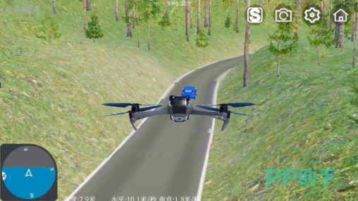 采用标准第三人称追尾视角,确保玩家全程可视无人机全貌及其与环境的空间关系。操作界面集成遥测数据面板、云台控制滑块、电池余量指示器及GPS定位图层等功能模块,虽初始上手略显复杂,但符合真实飞控逻辑。机体建模细致还原螺旋桨叶片纹路、碳纤维外壳接缝及LED状态灯效;飞行音效采样自实机录音,包含电机启停、风噪变化及信号干扰杂音,强化临场真实感。