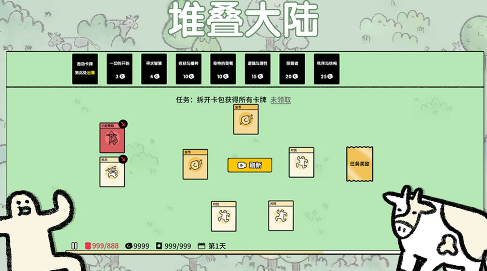 这是一款融合卡牌构筑与沙盒生存机制的策略向单机作品。玩家通过收集卡包并随机抽取卡牌,逐步构建资源循环系统:基础卡可产出木材、食物或工具,而稀有卡则可能触发突发事件——如资源短缺、敌对单位突袭或环境灾害。每一次开包都伴随风险与机遇,高度不确定性塑造出独特的节奏感和重玩价值。