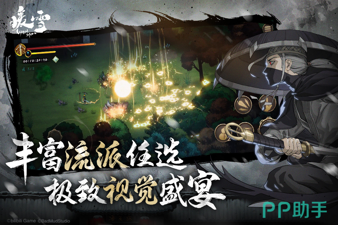本作以暗黑美学为基底,融合中国传统剪纸艺术语言,构建出极具辨识度的黑白水墨视觉体系。玩家化身持剑侠士,在程序化生成的关卡中展开单人闯关。每一局地形布局、敌怪配置与随机道具均不重复,配合碎片化叙事设计——关键剧情线索散落于可交互物件、NPC对话与环境细节之中,鼓励深度探索与主动拼合故事全貌。游戏共设四大宗派、数十种核心武学与百余种变异效果,策略深度与重玩价值兼备。