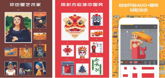 基于像素积木视觉体系打造,内置多类题材图库,包括宅文化主题、传统中国风、自然景观、节日元素等。采用数字填色机制,每幅图像标注对应编号,玩家依数字提示选择匹配色块完成填充,最终生成完整像素画作。操作仅需单指点击,零学习成本,适合碎片化时间放松使用。