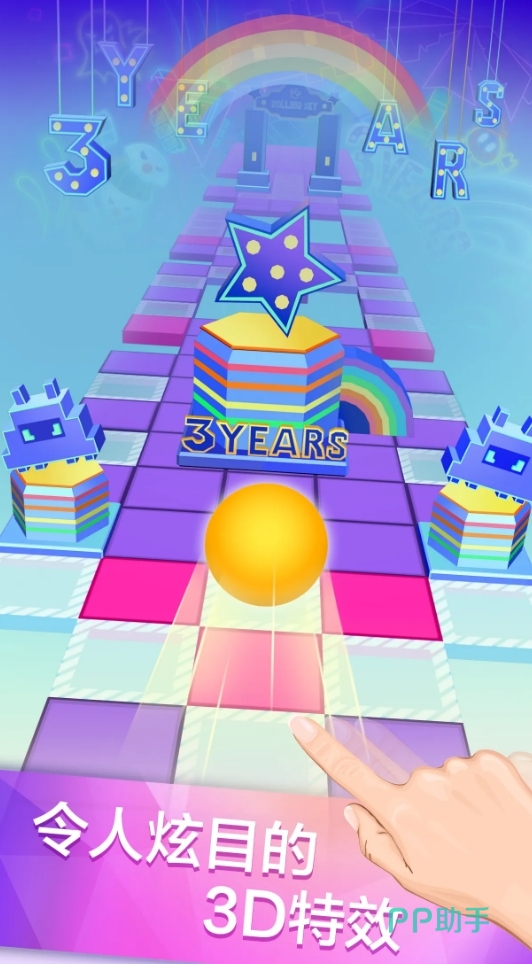 本作以高速节奏与精准操控见长,玩家需操控球体在悬浮于天际的立体轨道上持续前行。关卡设计融合节奏律动与空间预判,陷阱类型涵盖尖刺阵列、移动挡板、重力反转区及限时机关等多元障碍模块。操作反馈强调即时性与容错控制,考验手眼协调能力与短时决策效率,形成独特而富有张力的闯关体验。