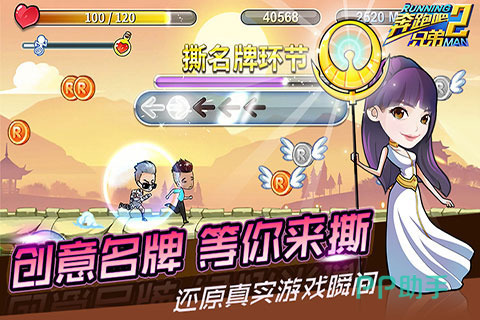 本作高度复刻综艺原版节奏,主打高速对抗式撕名牌玩法。游戏构建多主题动态赛道,融合机关陷阱、环境互动与实时变阵机制;每位明星角色均配备专属跑酷技能,如郑恺的“疾风冲刺”、Angelababy的“闪避回旋”,建模风格鲜明,形象辨识度强,确保玩家一眼识别对应综艺人物。