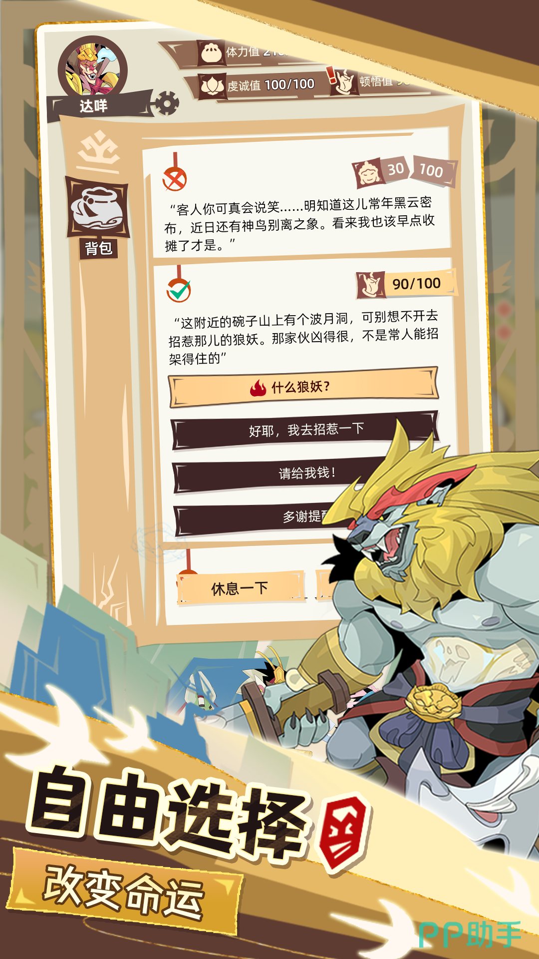 本作为文字驱动型Roguelike手游,赋予玩家高度叙事主导权。玩家可自定义主角身份开启取经之旅,自由选择同行伙伴并影响关键剧情节点,突破原著线性叙事框架。旅程中每个选择均作用于愿、缘、毅、体四项核心属性,任一属性归零即触发游戏结束。失败后进入轮回机制,保留精魄用于基础属性成长或法宝锤炼,形成可持续进化的成长循环。