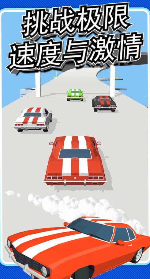 主打极简操作逻辑,仅需单指点击屏幕即可完成起步、转向与漂移,大幅降低上手门槛。地图采用立体分层结构设计,高低差与掩体布局增强路线辨识度。支持多人同屏实时竞速,胜利后可解锁全新载具,当前可选车型超百款。单局时长控制在90秒以内,适配碎片化使用场景。操作反馈即时可视,对手位置、距离及相对速度均以动态UI呈现,重复游玩仍具策略纵深与新鲜感。