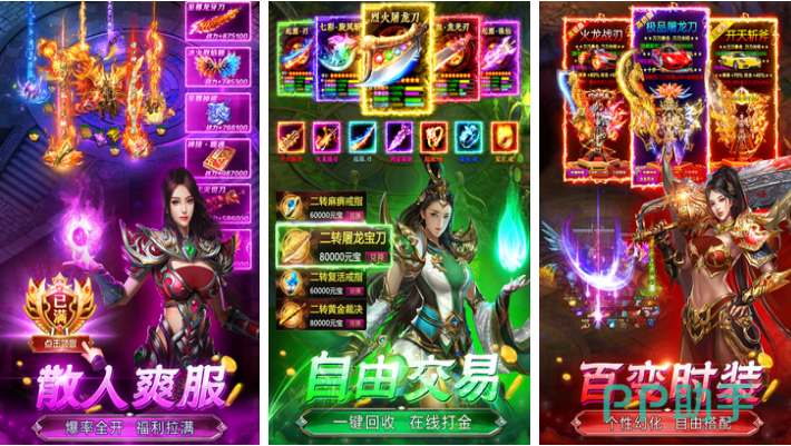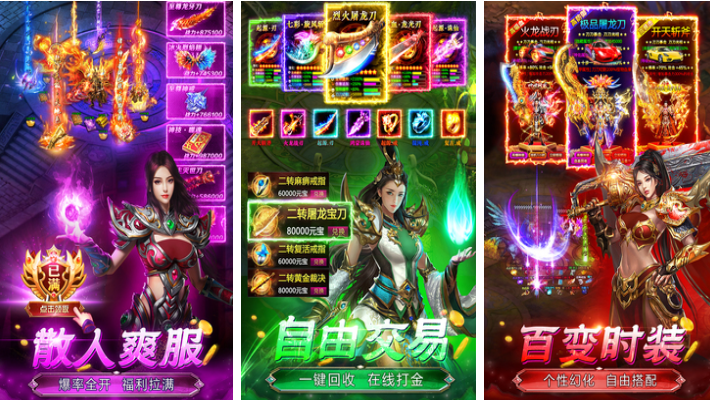 该作延续经典传奇品类高自由度内核,采用多服互通架构,支持跨服资源流通与大型沙盘国战。经济系统内置智能摆摊与寄售中心,交易税低于行业均值;装备体系含强化、镶嵌、神铸三重成长路径;战斗反馈强化“暴击震屏+音效分层”设计,配合无锁定视角提升打击实感;新增一键回收模块,支持批量分解、自动兑换与材料智能归类。
