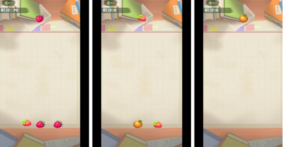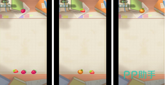 融合水果主题与经典三消合成机制,关卡以中央空白区域为操作核心,顶部持续下落草莓、橙子等不同造型水果。玩家通过滑动屏幕精准放置,实现两两相同水果碰撞合并,逐步解锁更高级别果实。左上角实时显示积分变化,强化目标感与成长反馈。