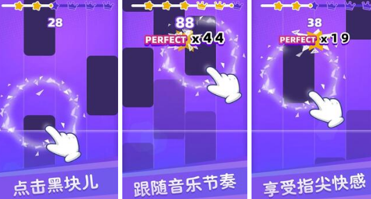 延续经典黑白块点击逻辑,以极简界面承载高密度操作体验。玩家需严格避开白色区域,仅触碰下坠的黑色方块,并根据音符长度执行短点或持续按压。失误容错率低,节奏变化频繁,对瞬时判断、手眼同步及持续专注力构成综合考验。高频交互配合紧凑节拍,带来沉浸式指尖律动体验。