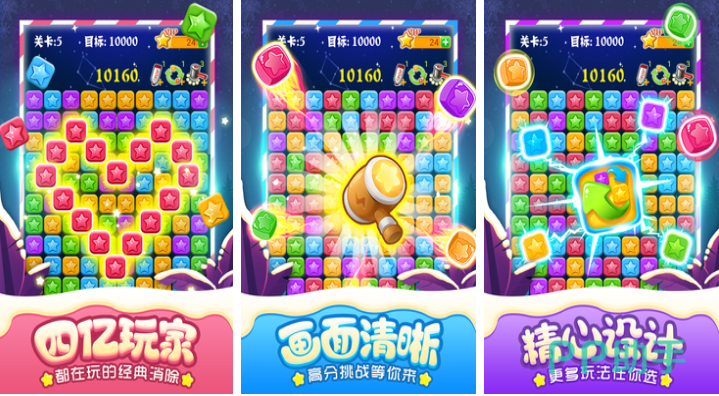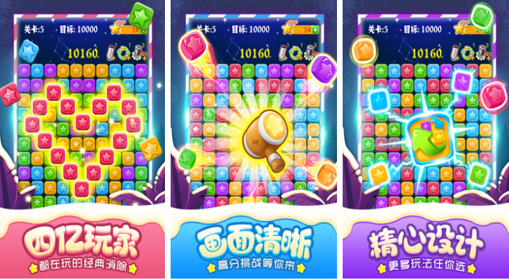 经典消除IP的迭代升级版本,延续“同色相连即消除”核心规则,优化动画帧率与触控响应精度。关卡总数超百关,包含限时挑战、步数限制、特殊障碍等多种模式。道具系统完善,支持撤销、提示、炸星等功能,美术采用高饱和度配色方案,界面简洁直观,适配全年龄段用户。