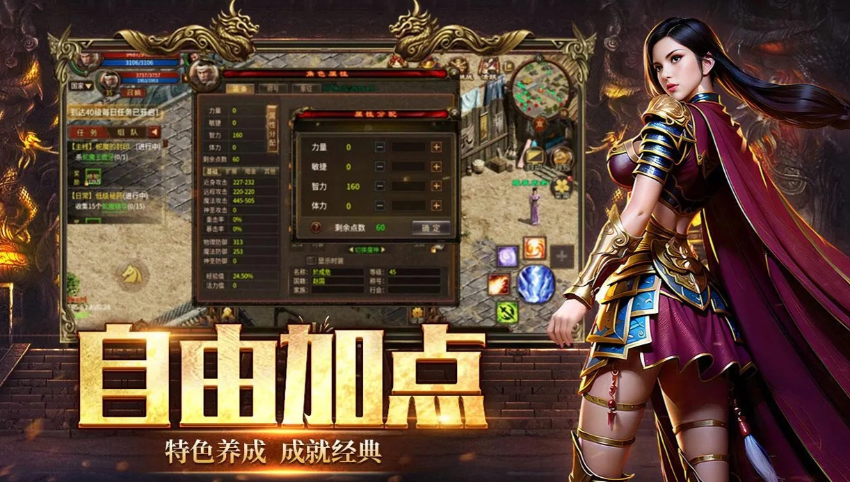 战力提升维度多元,除装备养成外,宝石系统构成关键成长分支。各类宝石提供力量、智力、暴击、韧性等定向属性加成,可自由镶嵌于指定装备槽位。玩家可根据职业定位与实战需求,定制个性化属性配比方案,实现差异化角色塑造。
