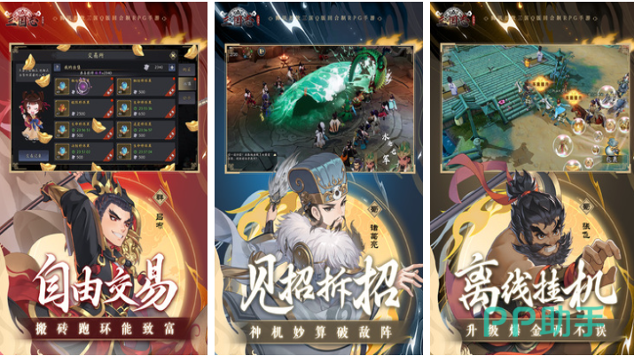 具备自由交易经济系统的三国题材策略手游。角色采用Q版建模,动作流畅度经引擎优化;战斗采用回合制策略框架,强调站位、技能链与克制关系;离线挂机功能覆盖日常任务与资源采集;数值设计规避“唯战力论”,侧重战术配置与资源调度能力,满足策略向用户深度需求。