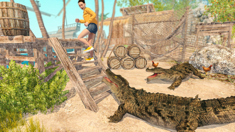 写实向动作对抗类模拟作品,采用欧美写实质感美术风格。核心剧情围绕鳄鱼族群反抗人类非法捕猎展开,玩家需操控角色参与近身格斗、领地争夺与资源抢夺。完成主线与支线挑战可获取金币与声望,用于兑换数十款限定鳄鱼皮肤,并解锁进阶技能树与环境互动权限。