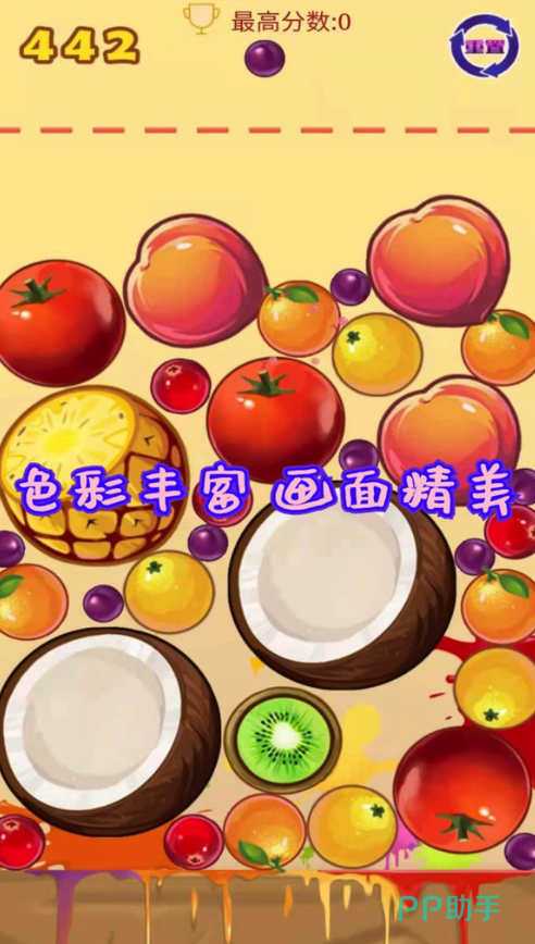 本作采用经典水果合成机制,界面中密集呈现西瓜、葡萄、橙子等多种鲜果形象。玩家通过拖拽相同水果进行两两配对,即可触发融合升级——两个小西瓜合并为中西瓜,继续叠加最终生成完整大西瓜,并同步累积积分。操作逻辑直观,反馈动画流畅,无复杂规则限制,适合全年龄段用户快速上手。
