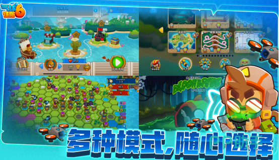 全球知名塔防IP《Bloons TD》系列第六代正统作品,采用3D俯视角呈现,兼顾策略复杂度与操作友好性。气球敌人按颜色区分属性类型,涵盖免疫、分裂、护盾等特殊机制;共开放14位可操控英雄,随等级提升解锁专属技能树,并支持定向强化特定猴子塔,形成高度个性化的养成路径。
