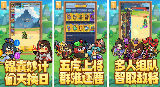 本作以三国历史为背景,独创“弹射+卡牌+塔防”三维融合机制。玩家需预先规划卡牌阵型布局,通过弹道计算触发连锁攻击,实现弹幕式清怪效果。美术层面融合木质朋克材质质感与日系Q版角色造型,整体视觉辨识度强,角色建模兼顾文化符号表达与萌系审美取向。