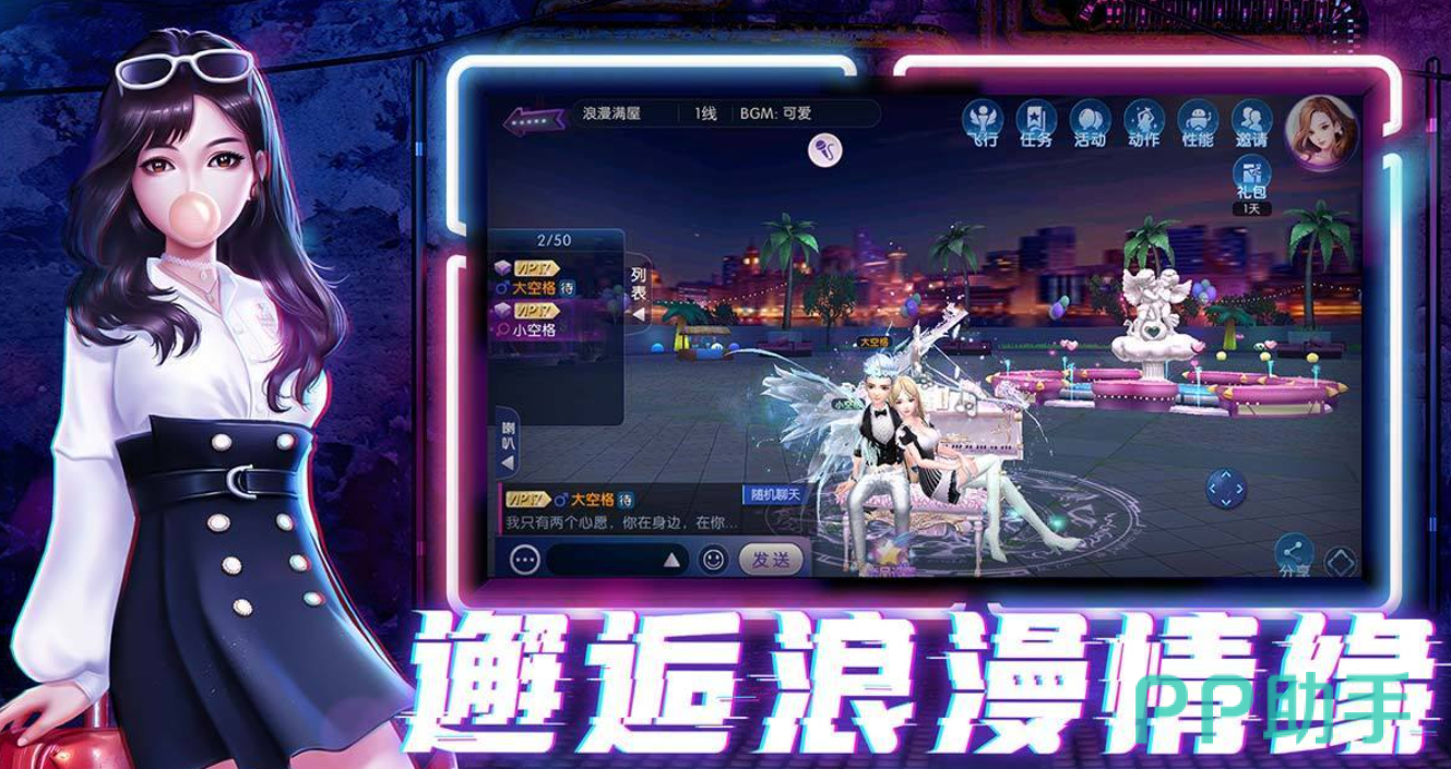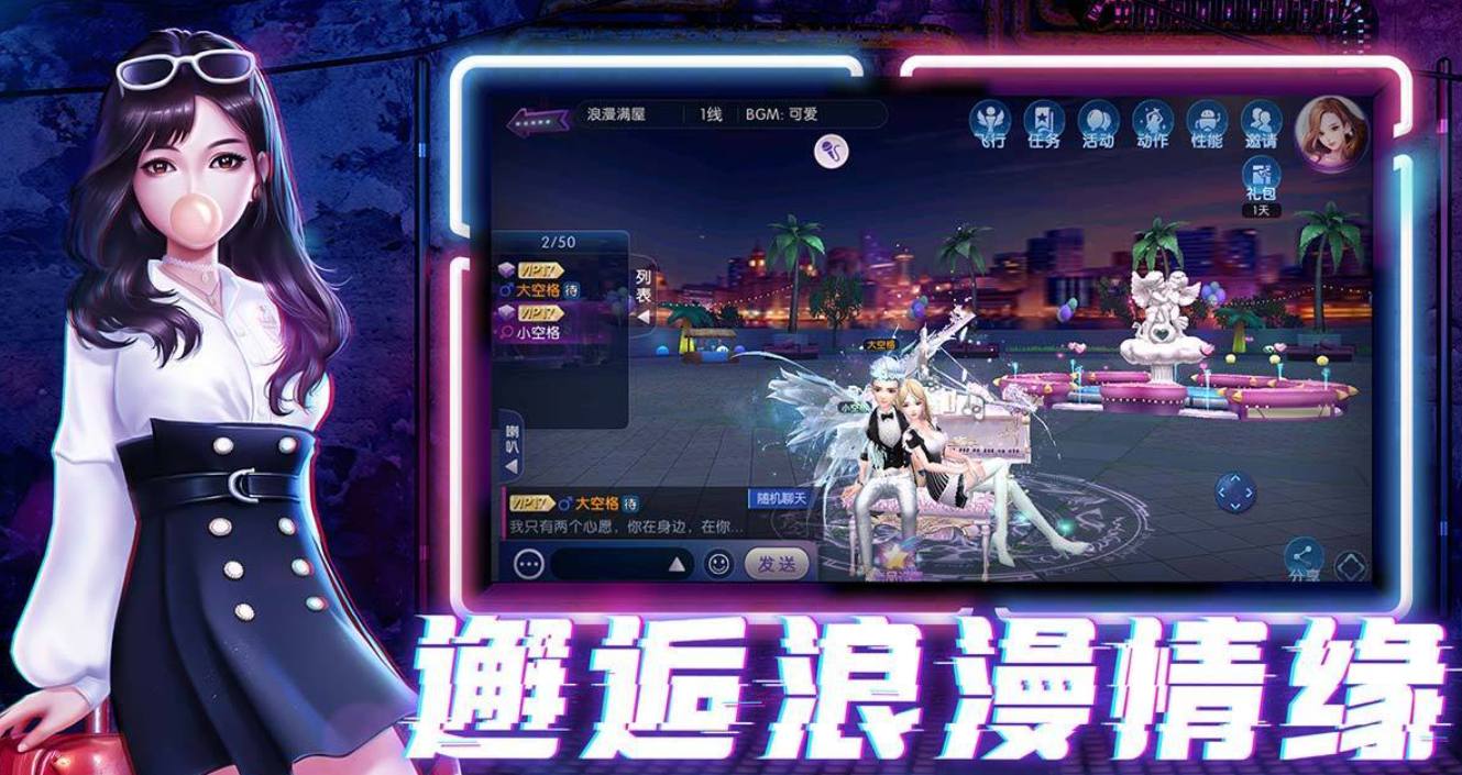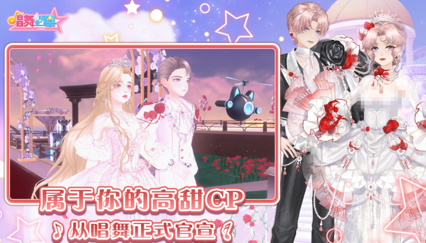 融合K歌与舞蹈双模式,支持情侣组队完成双人合唱、同步舞蹈挑战。内置婚礼系统、家园装扮、节日主题活动等内容,强化情感联结。画面渲染采用柔焦光影技术,人物肢体动画自然,背景动态贴图层次丰富。