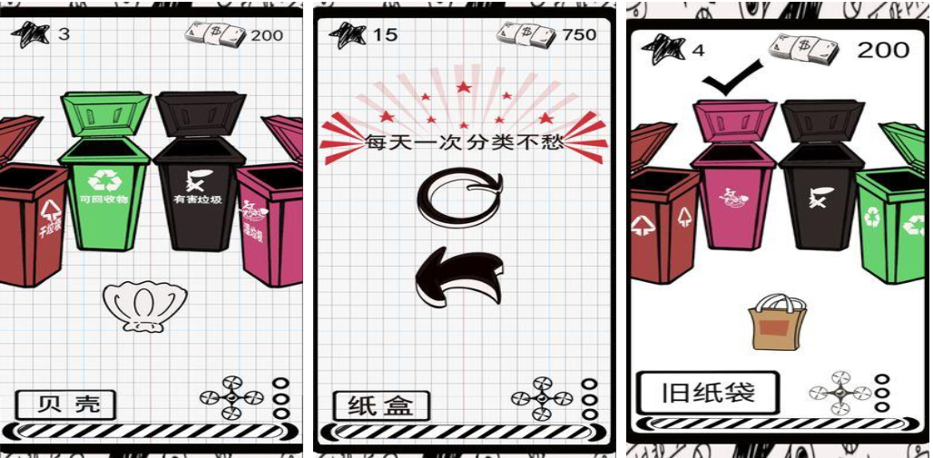 融合教育属性与闯关节奏的横版益智作品。玩家需在限定时间内识别并拖拽各类生活垃圾至对应颜色垃圾桶,涵盖可回收物、有害垃圾、厨余垃圾及其他垃圾四大类别。关卡设计循序渐进,后期加入限时挑战、连击加分与道具辅助机制。卡通画风明快,UI交互简洁直观,适合全年龄段用户培养环保意识。