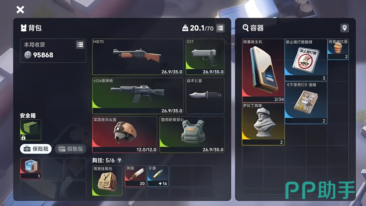 地图中散落着多种可交互目标:补给箱、废弃设施、武器残骸等。弹药、护甲、近战装备及远程武器均以高辨识度模型呈现,需玩家主动靠近拾取。受背包容量限制,物资管理成为每局决策重点——优先携带高性价比资源,舍弃低效物品,是提升单局收益的关键能力。