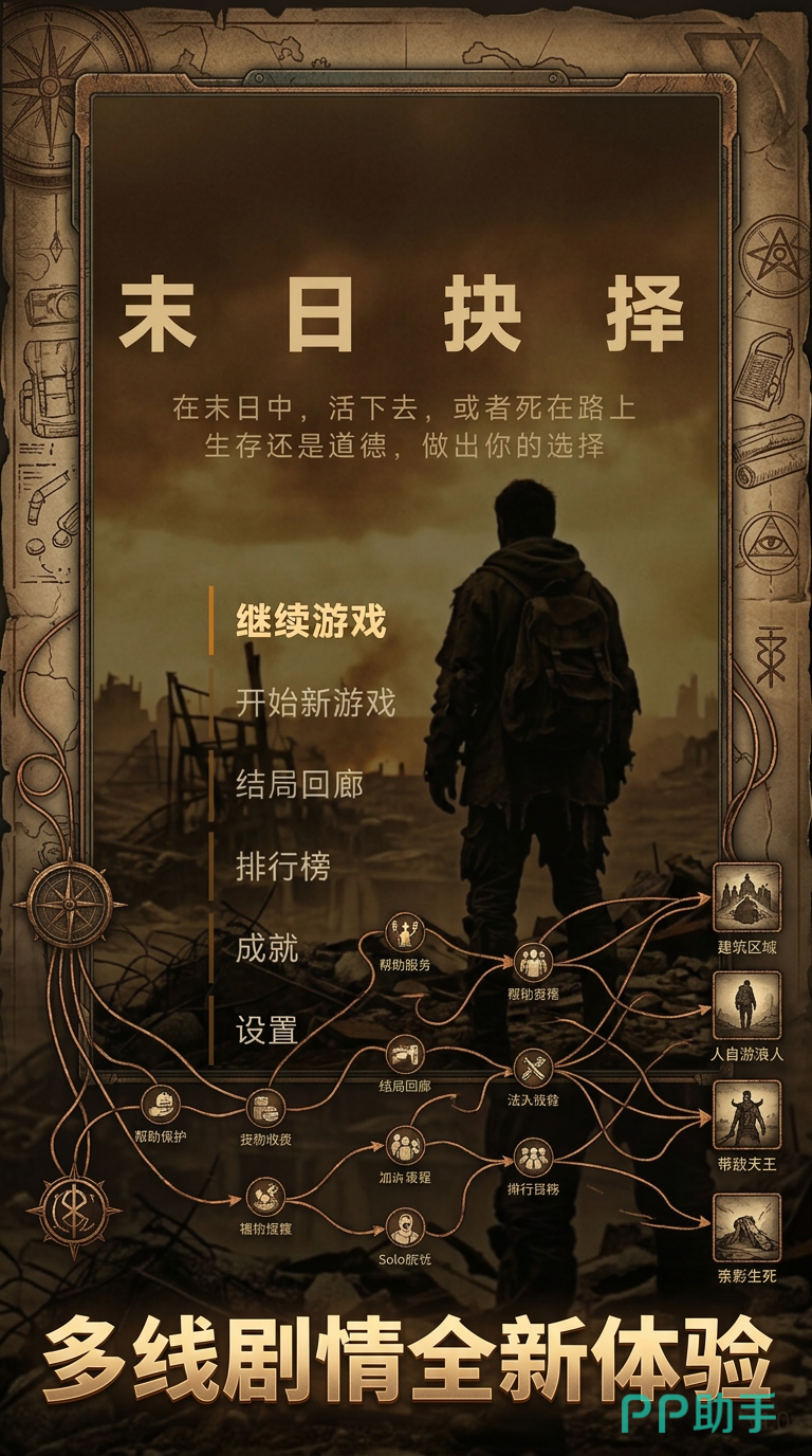末日抉择手游下载入口在哪里?这是一款聚焦人性考验的末日题材文字冒险游戏,玩家将在资源极度匮乏的废土世界中,反复面临关乎生存与良知的关键抉择。没有传统丧尸围城或基地建造的套路,游戏以“食物、道德、体质”三项核心属性为驱动,构建出高度写实又极具张力的末日生存规则体系。