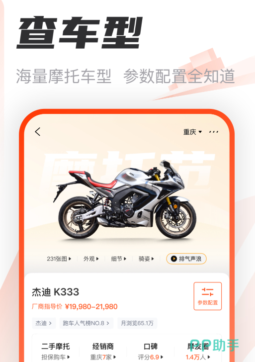 摩托邦以“骑行服务+交易支持”双轮驱动,构建起涵盖智能轨迹记录、车型资料检索、专业测评解读、车友圈层交流及二手车辆信息发布的一体化平台。其二手板块严格审核卖家资质与车辆基础信息,支持按排量、年份、里程、地区等多维度筛选,帮助用户快速锁定符合预算与需求的目标车源。