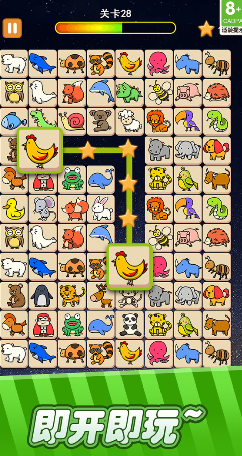 作为经典消除玩法代表作,本作以萌系小动物图鉴为核心元素,考验玩家对路径规划与视觉识别的综合能力。关卡中相同图案之间常被障碍物隔断,需通过合理消除中间图块,逐步打通连接通路。每关设有步数或时间限制,辅以炸弹、提示、重排等实用道具,兼顾策略性与休闲感,适合碎片化时间体验。