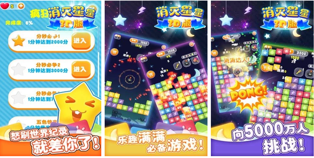 作为经典IP的3D化升级版本,《消灭星星3D版 2015》在保留核心消除逻辑的基础上,全面重构视觉表现。立体星体建模、动态粒子反馈、多层景深背景共同营造沉浸式解压体验。关卡设计延续高自由度风格,支持连消判定与道具组合策略,适配不同操作习惯的玩家群体。满屏星光爆破的视觉节奏感,至今仍被大量老玩家视为休闲类手游的标杆之作。