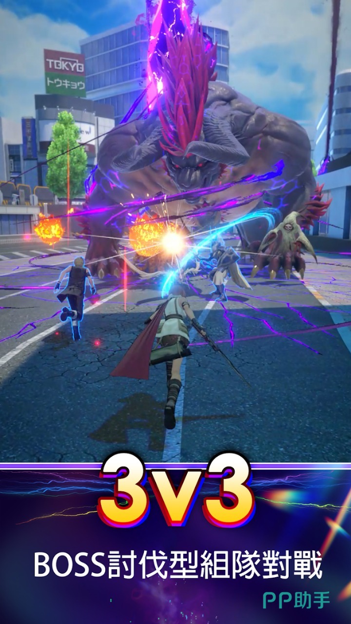 游戏的规则是两支小队通过混战清理怪物加抢夺资源,率先击杀boss的一队就能获胜。单局时长控制在5~8分钟,节奏快,随时拿出来完成一局战斗。战斗环境设置在了现代东京城市场景,这里有各种地形高低设定,有掩体、水晶点、还有野怪区,需要充分利用战场环境来战胜敌人。战场中大家争夺的核心是勇气值,通过清理小怪、抢水晶和击杀敌人就能积攒勇气值,消耗勇气值就能对boss造成伤害。这就成了游戏中独特的竞技链,杀人并不是最终目的,需要在打boss的同时干扰对方输出,这样就有了更好的竞技性和策略性。