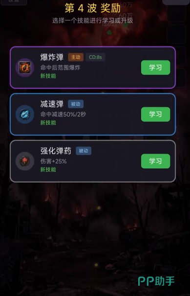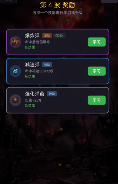 游戏在塔防基础上会融合大量肉鸽设定,系统会随机出现大量强化弹药,玩家要根据当下的对战需求做出选择,每次都会随机给出三个,其中包含新技能和玩家已经拥有的技能,新技能可以通过学习的方式快速获取,已经获取的技能还能在原有的基础上升级,具体升级射击能力还是强化弹药,玩家要根据实际需求做出选择,确保每一局对战都能拥有更强战力,顺利击溃僵尸。