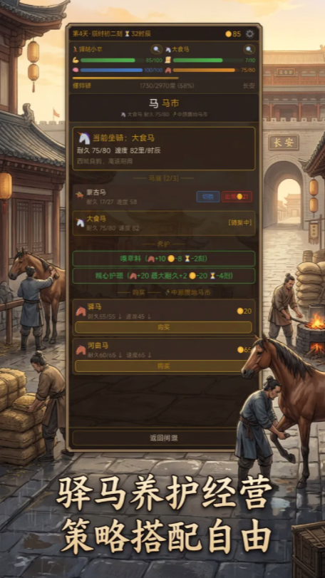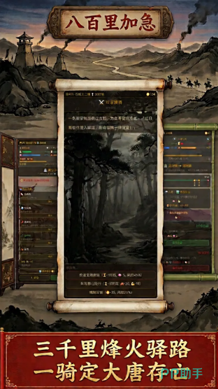 八百里加急会让玩家穿越回唐代安史之乱时期,面对大量战事,玩家要成为一名信使,把军情从范阳送到长安,配送信件全程3000里,覆盖5个地理区域,在区域中会有20多个战役,玩家要在历史还原度极高的场景中分秒必争,合理安排角色的赶路休息时间,确保军情能快速送达,游戏里会出现大量的随机事件,玩家要消耗时间诊治疾病,另外还需要完成采购,让自己能在送信过程中有更多资源可以使用,喜欢这类古风题材的玩家,可以去豌豆荚预约下载,能在竖屏场景中感受真实的古代送信体验。
