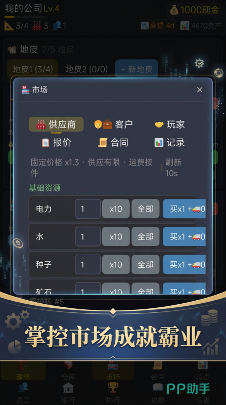 玩家所需要做的就是识人用人,然后合理激励。组建一支打硬仗的团队,才可以让企业高效的运转。游戏中的商业环境并不是一成不变的,每天都会动态更新,竞争对手还会搞促销突袭。这些随机事件就好像现实中的商海风浪一样,会很考验你的应变能力。你所需要做的就是学会签合同,长期供应协议就可以锁定原料的价格,但是会限制采购的自由。联合营销就可以分摊广告成本,还可以共享收益,每一种合作都会有得有失,一切都看你的商业自由。
