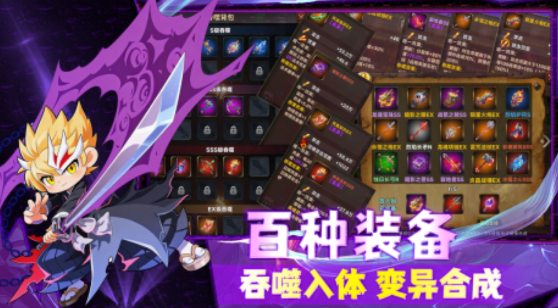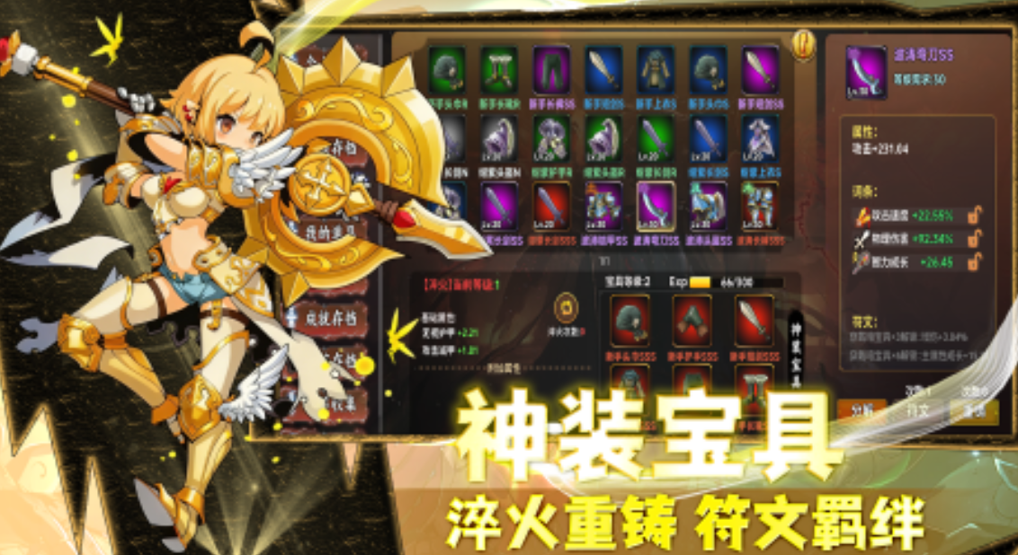 装备系统成了游戏的重要组成部分。百种装备可自由收集,每件装备都可以吞噬进阶,甚至可以变异合成出属于自己的神装宝具。该种玩法不但使收集变得有趣,而且每次战斗都是有不可预料性的,你永远不知道下一件掉落的装备会成为翻盘的利器。符文羁绊系统也使角色培养更加具有策略性,不同的组合会产生不同的战斗效果,深度爱好者完全可以在这个系统里找到属于自己的玩法乐趣。