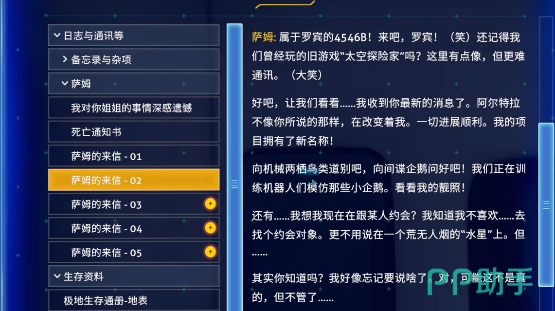 吊舱实际上并不难找,咱们只要注意一下氧气就行。在找到吊舱之后进入便可以恢复自己全部的氧气。这里会解锁一些新功能,我们先不慌熟悉,咱们现阶段所需要做的就是去查看一下日记,日记里面有着不少重要的资料,这里面也有着一些姐姐的好友的说明。这里咱们重点需要注意的便是萨姆的来信。她会告诉我们不少关于游戏的资料。在看完这些信息之后咱们需要检查一下自己的装备,接下来我们的旅程才算是正式开始了。