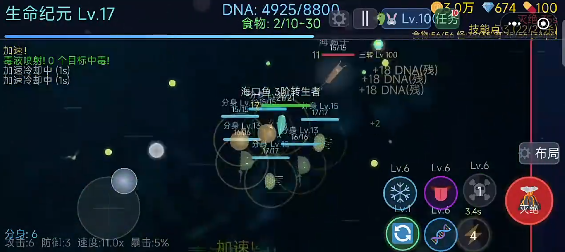 游戏还是比较好玩的。主要的玩法就是围绕生存、进化,探索三大关键词,上手很简单,并不是很单调,所有的玩家都可以找到专属的乐趣。开局,你只不过是原始的细胞,主要的任务就在于要不断的通过吞噬浮游生物,然后获取能量,在危机四伏的海洋中,就可以慢慢的站稳脚跟。进化系统是游戏的一大灵魂所在,而且也是比较有吸引力的。每一次吞噬能量,还有成功躲避天敌,都会积累进化点数。