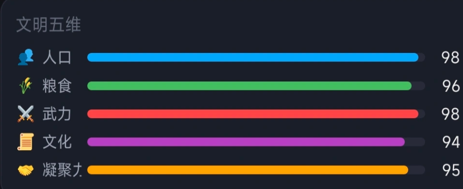 游戏比较打动人心的就是历史抉择的真实感,从长老制存废,再到大禹治水,游戏就会还原华夏文明早期的关键历史节点。每一个事件都会在真实历史的背景上设计,你的选择没有绝对的对错,但是会影响到文明的走向。支持长老制可以稳定的凝固凝聚力,直接决定部落的兴衰,还有后期事件的触发。决策还会带来持续性的增益或者减益效果,玩家需要做的就是注重于趋利避害,让文明可以得以延续。