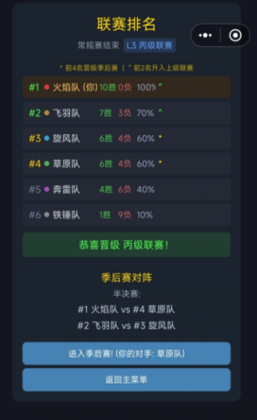 球队组建完成之后,首要的任务就是了解球队能力,要尝试带领角色参与多个不同的联赛,通过比拼对抗,证明出球队能力,每次比拼都会有大量的隐藏事件和彩蛋,玩家要调整球员的组合,针对联赛制定战术策略,确保每支球队都能顺利赢得比赛,游戏没有复杂的画面,会通过全文字设定,开启独特的球赛经营模拟,喜欢篮球的玩家不要错过游戏,通过组合球员,能让玩家获取更丰富的策略,喜欢策略向经营玩法的玩家,推荐大家进入游戏,打造属于自己的篮球王国。