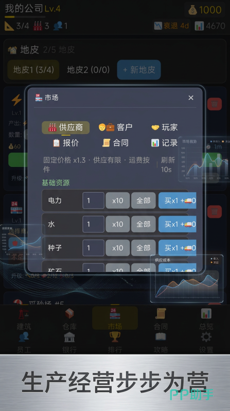 合同系统还会包括长期供应,每一份合约都会有明确的法律效应。更加惊喜的那就是动态经济环境,可以有效实现每日更新利率,行业政策,甚至还会随机触发市场波动。例如原材料涨价,竞争品降价,以及突发疫情去影响客流,会比较考验玩家风险把控的能力。玩家可以深耕单一行业去做垂直巨头,也可以多元化布局分散风险。从食品到服装,再到电子商品,每一个行业都有专属的玩法,还有挑战。随着规模扩大,就能解锁跨服务贸易,建立全球供应链,利用区域价格去赚差价。