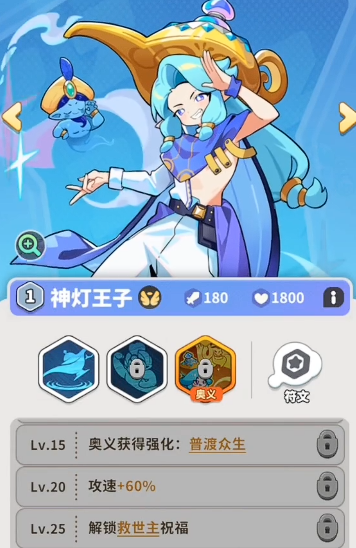 最后就是神灯王子,他目前在多功能辅助效果当中,能够替换他的角色绝对不多,而且有这个角色的话,我方后期可以用到的阵容搭配会更多,可以直接盘活其他的队友身上核心的能力,因为他自身的效果当中可以通过愿望祝福来加强我方需要的各种增益,另外在大招效果上面,除了基础的输出之外,同样也有一定的增益可以施加,另外不管是伤害数值还是技能体积,得到神灯王子的加成之后,大家可以看到的上限都是全队需要的提升关键,所以在我方需要各种角色进行提升的时候,这里神灯王子都是大家可以用起来的一类英雄。