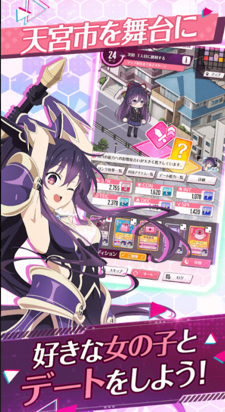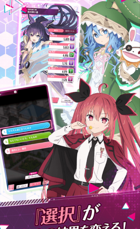 该游戏最独特的地方就在于把恋爱模拟和角色养成绑在一起。在游戏中,玩家不再是旁观者,而是成为了原作里的人物,五河士道,直接同引起空间震灾难的精灵少女正面交战。游戏核心玩法是以约会为肢体,不仅带来了视觉上的互动,更是决定角色强弱的重要因素。每一次对话的选择、每一个互动的小节都会给精灵留下印象并且产生记忆,从而影响到它的成长值。