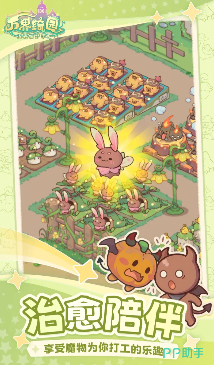 初入游戏,就会体验到前所未有的魔物共生模式。这里的魔物不但是宠物,也是庄园的家人和员工。这些,魔物根据性格特点分布在各个地方的,他们有的照顾花草,有的在工坊工作,有的还会举行搞怪派对。玩家不需要复杂的操作,只需要合理布置和互动,就可以使魔物的能力被激发出来,和玩家一起维持庇护所的正常运转,体会出没有语言的默契和轻松诙谐经营的乐趣。