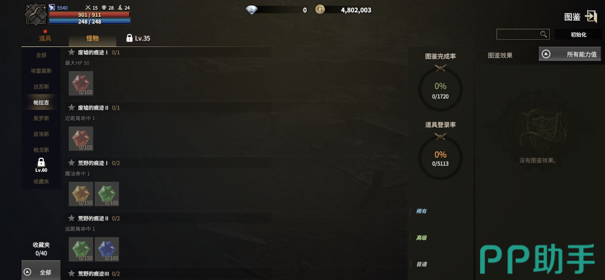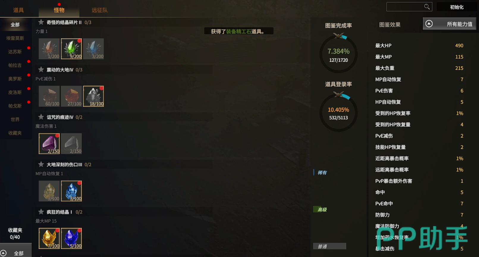 装备图鉴按职业与品质维度细分,包含武器与防具两大类。激活方式分为两类:其一为实际拾取对应品质装备后系统自动登记;其二为通过制作系统成功打造成品装备时同步激活。该设计强调“用即得”,建议优先激活契合主职业核心属性(如法师侧重智力、战士侧重力量)的中高阶图鉴,避免为凑齐低品质图鉴消耗大量基础材料。怪物图鉴以各大陆野外产出的珍稀玉石为核心收集对象,支持三种获取路径:野外击败对应怪物直接掉落、交易所竞价购入、使用原石碎片合成替代宝石。远征队图鉴则围绕宠物远征行为展开,既可通过宠物在不同大陆执行远征任务随机获得图鉴素材,也可借助制作系统定向产出。