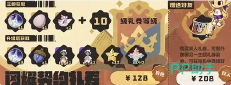 闪耀契约礼券单买128元,拼单208元的话,人均104元。包括基础版本的所有福利,还会额外的增加炫彩球。专属的战令宠物蛋,在这一个档位也可以拿到,没有其他获取的途径。除此之外,还可以拿到专属的头像,可以更快的解锁后续的奖励。不同玩家的氪金思路会有所区别的,对于平民玩家而言,完全可以通过零氪金去畅玩,不需要花一分钱,只要找一个已经购买战令的好友,就可以直接去拿果实,照样可以解锁核心的精灵。对于微氪玩家而言,就可以花最少的钱拿到最多的资源。