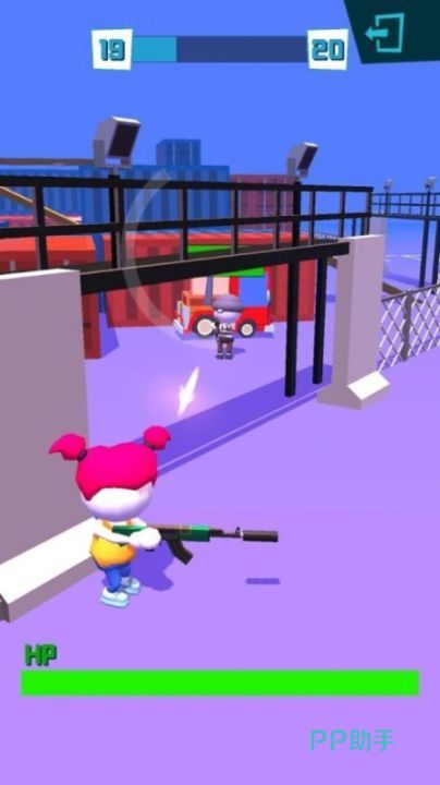 《妹子神枪手》把一个娇小玲珑的萌妹子作为了枪战主角的设计,游戏还运用了醒目出众的卡通建模,构筑了各种结构新奇有趣的地图战场,而且还通过各种符号标注的形式,让大家前往指定的地点去进行换弹、或重新选择武器等等,以各种地下组织的反派作为了对手,杀敌可以推进皮肤套装的获取进度。