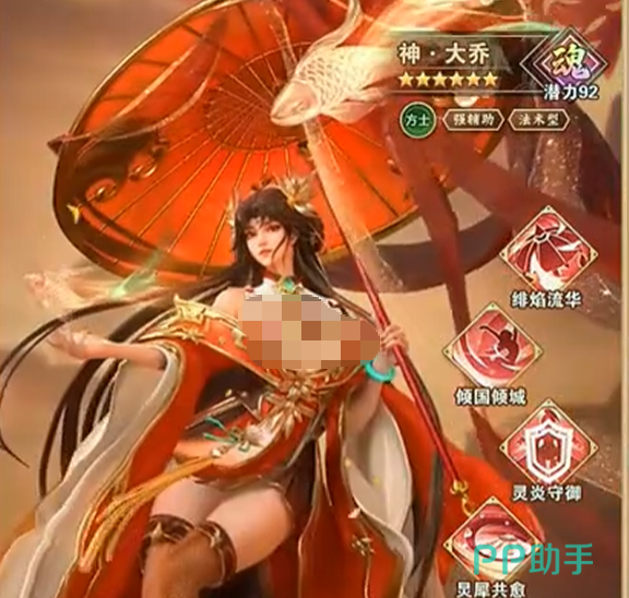 功能型武将大乔也成了这套阵容的点睛之笔。大乔的3技能可以给己方全体加不可驱散的护盾,护盾受到伤害的时候会把一部分伤害返还给攻击者。这一个机制同赵云的反击特性达成了一种完美的化学反应。大乔4技能有从敌方所受伤害中产生群体治疗的特性。配合反伤效果和赵云的反击伤害,该套阵容可以把彼消我长的战术思想发挥到极致,让敌人在受到攻击的时候不仅要承受反击,还要面对我方源源不断的恢复。