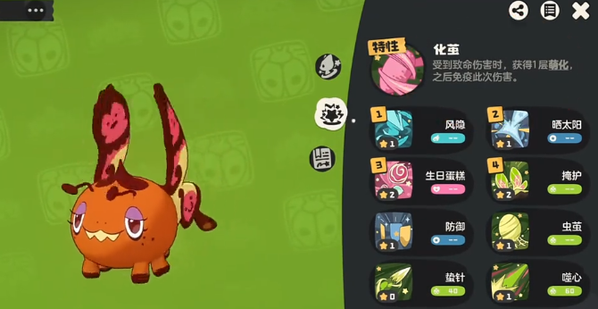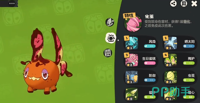 化蝶:这就是PVP的顶级拦截位置,主要是靠化简的特性。在受到致命伤害时,并不会直接阵亡,而是退化成上一个阶段,相当于拥有三次作战的机会。技能搭配退化技能,太阳还有封印技能,打造出来的化蝶拦截能力就可以直接拉满,可以限制敌方主力输出的发挥。